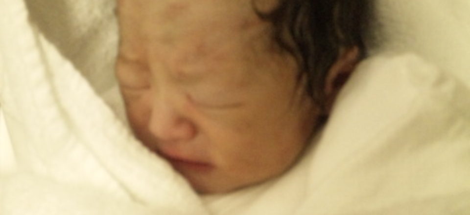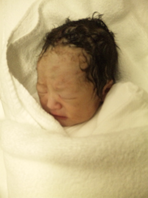 生後2時間程の赤ちゃんです。